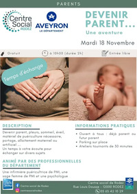 L’entrée est libre et cet atelier sera animé par une infirmière puéricultrice, une sage-femme de PMI, ainsi qu’une psychologue.