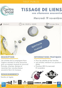 Le Club de Rodez ainsi que le Centre Social de Rodez vous invitent à venir rencontrer les artistes de la compagnie Hors-Logerie pour un moment musical et convivial.