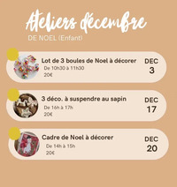 Samedi 20 décembre de 14h à 15h. 20€/enfant (à partir de 6 ans). Durée : 1h.