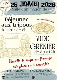 Vide grenier et déjeuner aux tripous organisés par l’APE de l’école Jacques Prévert à Luc.