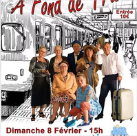 Pendant 1h30, et dans un décor de hall de gare, les 7 comédiens vous entraineront « A fond de train » dans leur univers de raillerie, de facétie, d’humour parfois absurde et décalé en interprétant une quinzaine de sketchs en duo, trio ou tous ensemble.