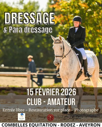 Le 15 février 2026, le centre équestre Combelles Équitation, aux portes de Rodez, accueille un concours de dressage & para-dressage – niveaux Club et Amateur. Une journée placée sous le signe de la précision, de l’harmonie et du sport, réunissant cavaliers et chevaux dans un cadre naturel d’exception en Aveyron.