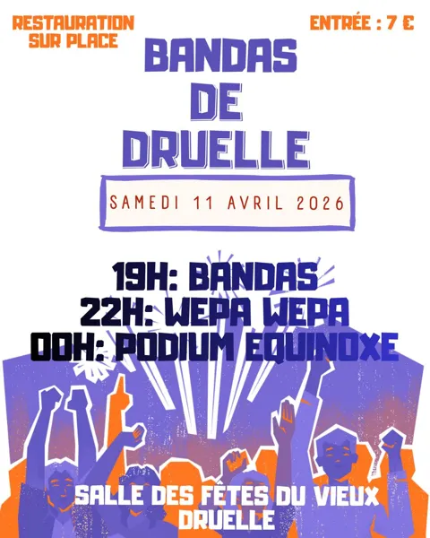Venez nous rejoindre pour une soirée haute en couleurs et en musique, dans une ambiance festive à la salle des fêtes du Vieux Druelle, le samedi 11 avril !