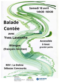 Infos: Départ à 14h30 devant La Doline à Sébazac. Retour vers 16h30. Collation (fouace et jus de pomme). Tarif: 5€. Gratuit – 16 ans. En cas de mauvais temps: conte musical à la Doline. Réservation souhaitable.